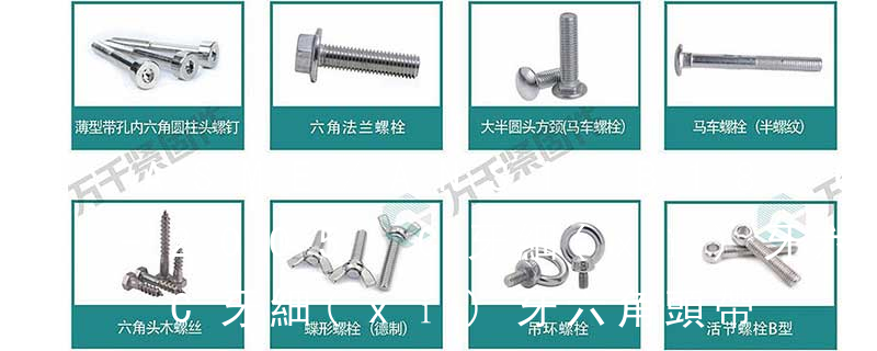 1、頭部形狀頭部形狀各式各樣。有圓頭(半圓頭)、扁圓頭、圓頭凸緣(帶墊)、扁圓頭凸緣(帶墊)、盤頭、盤頭凸緣(帶墊)、沉頭、半沉頭、圓柱頭、球面圓柱頭、喇叭頭、六角頭、六角法蘭頭、六角凸緣(帶墊)頭等。2