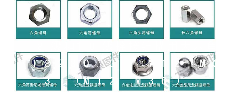 螺母依據(jù)屬性主要有國標(GB)、德標(DIN)、國際標準(ISO)、日標(JIS)、美標(ASTM/ANSI)等標準。其中、國標、德標、日標用M表示(例如M8、M16),美制、英制則用分數(shù)或#表示規(guī)格(如8#、10#、1/4、3/8)。 10.9級摩擦型高強螺栓與10級螺母配套使用,GBT 18230.4-2000 栓接結構用1型大六角螺母B級10級。M20、M22、M24螺母厚度分別為18mm、19.4mm,21.5mm。M24的螺母中M表示螺紋特征(牙型)代號(公制普通螺紋),24表示螺紋