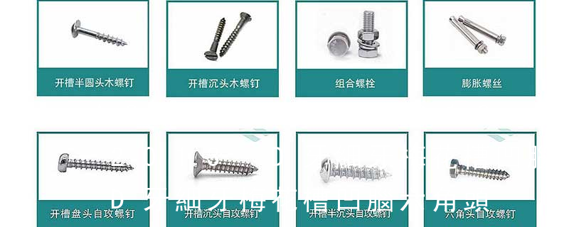 主要分類包括普通螺絲、機螺絲、自攻螺絲和膨脹螺絲三種。有頭螺釘Cap screw 過去限于全牙的扣件。六角頭螺釘Hex cap screw與大六角螺栓Hex bolt 顧名思義為頭部為六角型的外螺紋扣件,設(shè)計為使用扳手轉(zhuǎn)動。依照ASME B18.2. 1.機螺釘 2.自攻螺釘 3.鉆尾螺釘 4.墻板釘 5.纖維板釘 6.木螺釘7.六角木螺釘 8.不脫出螺釘 9.組合螺釘 10.微型螺釘 11.家具螺釘 12.電子螺釘 頭型 :1.六角頭(hexagon head) 2.六角頭法蘭面(hexagon head