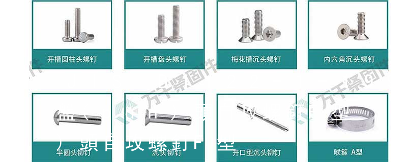 1.螺紋滾成自攻螺絲 (Thread Rolling Tapping Screws)─三角牙自攻螺絲,又稱(chēng)為T(mén)ype TT(Type Tai 目前仍有專(zhuān)利)系基于成型螺絲攻之原理發(fā)展而成,螺紋滾成自攻螺絲具有特殊設(shè)計(jì)之螺紋及尾端使螺絲可以在斷續(xù)之壓力下自行 螺栓有:1、方頭螺栓,2、半圓頭方頸螺栓,3、十字槽盤(pán)頭螺釘,4、內(nèi)六角沉頭螺釘,5、方螺母C級(jí),6、蝶形螺母,7、六角頭螺栓,8、十字槽盤(pán)頭自攻螺釘。大小有M18、M6、M8、M16、M10、M12、M14、M20等型號(hào)。通常用